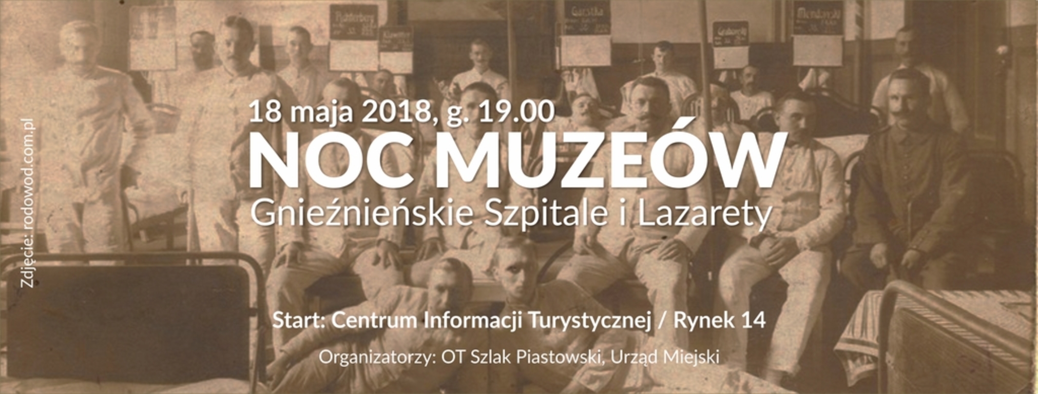 Zapraszamy serdecznie na kolejną edycję Nocy Muzeów. Tym razem tematem przewodnim będą gnieźnieńskie szpitale i lazarety. Uczestnicy spotkania poznają historię gnieźnieńskich lecznic zarówno tych istniejących, jak i miejsc, które pełniły tę rolę jakiś czas temu, poznają historię pierwszego gnieźnieńskiego szpitala, zajrzą do piwnic Zespołu Szkół Ekonomiczno- Odzieżowych, a nawet na Komisariat Policji. Dlaczego? Zapraszamy, aby przekonać się osobiście. Spacer z przewodnikiem jest darmowy, zwiedzanie rozpocznie się przy Informacji Turystycznej - Rynek 14 - 18 maja (piątek) o godz. 19:00