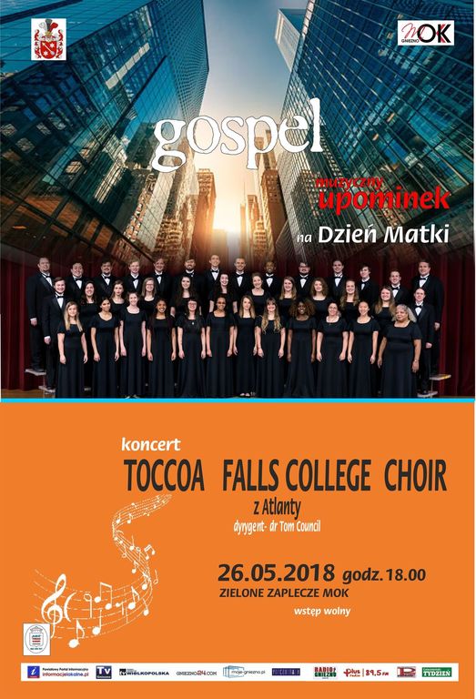 Zapraszamy na koncert z okazji Dnia Matki w wykonaniu amerykańskiego Chóru z Toccoa Falls College. Początek 26 maja 2018 o 18.00 – zielone zaplecze MOK. Wstęp wolny.