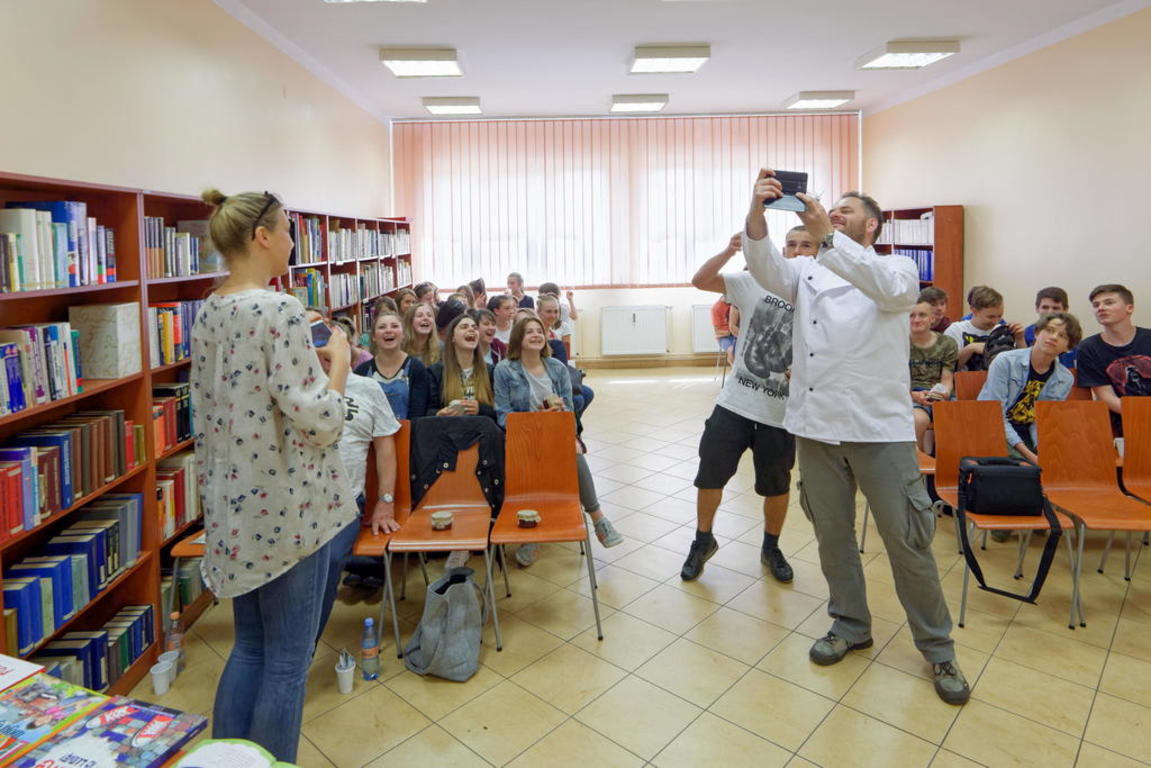 Kiedy myślimy o polskiej kuchni, pojawia się kilka skojarzeń: tłusta, ciężka, pracochłonna. Ale czy rzeczywiście taka jest? Nasza kuchnia ma swoje wady, ale ma też sporo zalet, o których zapomnieć nie wolno. Wspaniałe dania to nasze kulinarne dziedzictwo, które warto pielęgnować i nie pozwolić, by odeszły w zapomnienie. Wychodząc z tego założenia Biblioteka Publiczna Miasta Gniezna zorganizowała 14 maja 2018 spotkanie „Dziedzictwo kulturalne od kuchni”. O tradycjach kulinarnych, regionalnej żywności opowiedział młodzieży Łukasz Muciok, nauczyciel i wykładowca zagadnień związanych z zarządzaniem i logistyką, działacz społeczny i kulturalny, od kilku lat zajmujący się promowaniem produktu lokalnego, prowadzący blog markasamawsobie.pl