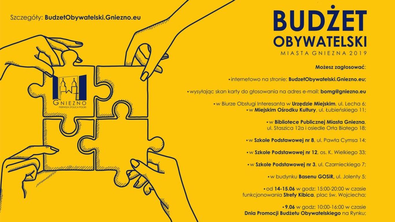 Pełnoletni mieszkańcy Gniezna będą mogli głosować od 4 do 15 czerwca w następujących punktach: