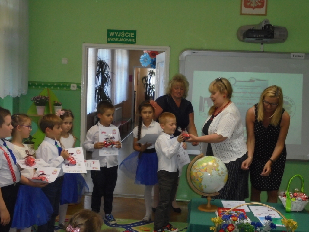 Drugą część uroczystości obejmowało podsumowanie międzynarodowego projektu „Nasze miasto – nasze gniazdo”. Dzięki mieszczącej się w sali oddziału II tablicy interaktywnej, zaprezentowano profesjonalnie nagrany filmik z realizacji zadań objętych projektem. Po projekcji filmu nastąpiło uroczyste wręczenie pamiątkowych dyplomów i upominków dla dzieci biorących aktywny udział w tym międzynarodowym przedsięwzięciu oraz dla koordynatorów projektu. Nagrody wręczały: Małgorzata Tomczak – prezes Klubu Nauczycieli Polskich i Polonijnych w Gnieźnie oraz Mariola Ilnicka - dyrektor Przedszkola nr 6, wiceprezes Klubu Nauczycieli Polskich i Polonijnych w Gnieźnie.