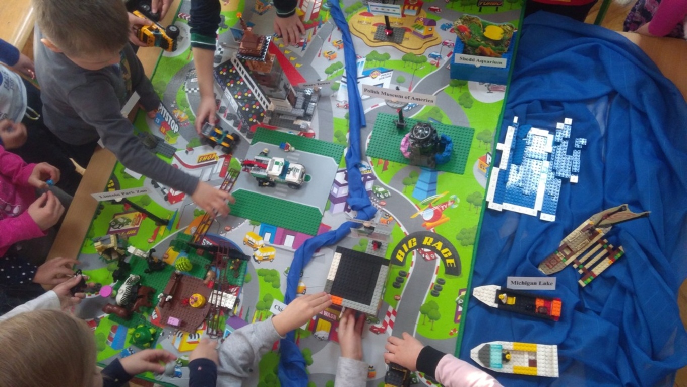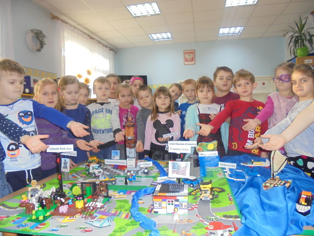 Po ich otrzymaniu wzięto się do intensywnej, twórczej pracy. 15 chętnych dzieci z oddziału „Bławatki” (Filip, Patryk, Łucja, Wiktor, Marysia, Tymek, Marysia, Krzysiu, Julka, Ania, Wiktoria, Maja, Gabrysia, Julek, oraz Lilka) wykorzystując swoje talenty lingwistyczne i aktorskie, zaprezentowało w zaaranżowanym studio telewizyjnym, podczas profesjonalnego nagrania wideo, odpowiedzi na zadane przez ”Literki„ z USA pytania. Mając na uwadze wiek ściśle związany z działaniem opartym na zabawie, stworzono z klocków lego makietę miasta Chicago, która była jednocześnie graficzną odpowiedzią na postawione nam pytania.