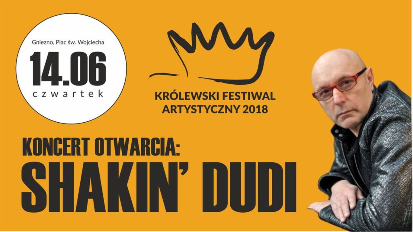 Koncert polskiego króla neo-swinga Shakin’ Dudiego otworzy 14 czerwca tegoroczną edycję Królewskiego Festiwalu Artystycznego w Gnieźnie. Zgodnie z mottem festiwalu, łączącego „sześć stanów skupienia kultury”, 12 letnich weekendów w pierwszej stolicy Polski wypełni kilkadziesiąt wydarzeń: od dużych, plenerowych koncertów, przez seanse kina letniego i „Koronację Królewską”, aż po kameralne występy grajków i teatrów ulicznych.