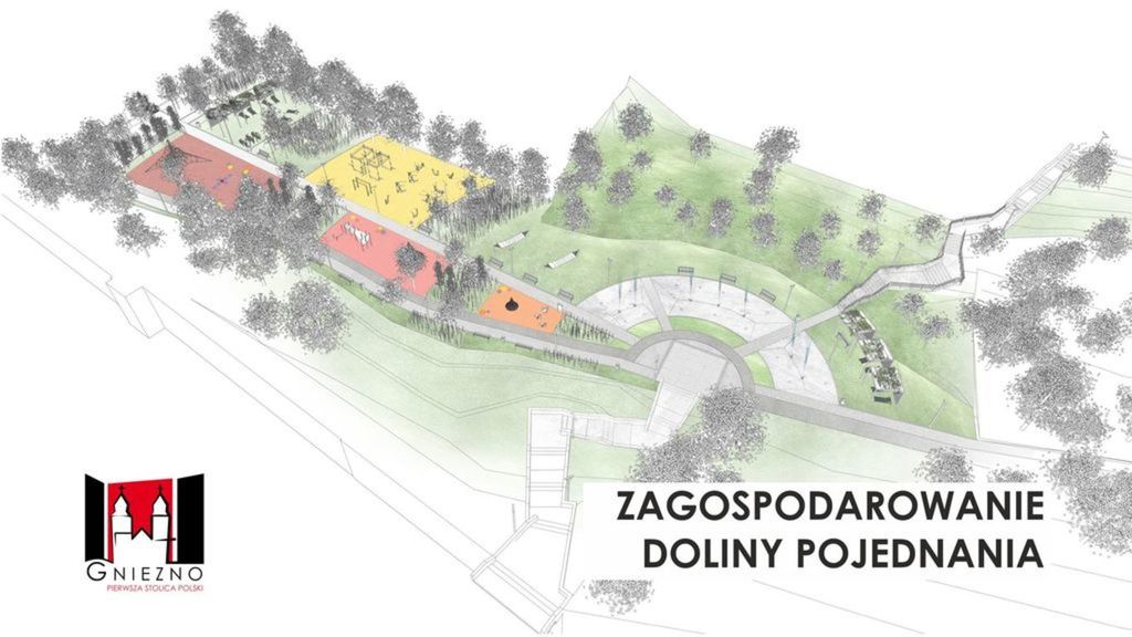 Będzie to pierwszy etap rewitalizacji terenu Doliny Pojednania; o całej koncepcji pisaliśmy wcześniej tutaj: https://www.gniezno.eu/wiadomosci/1/wiadomosc/130851/kolejny_etap_zagospodarowania_doliny_pojednania