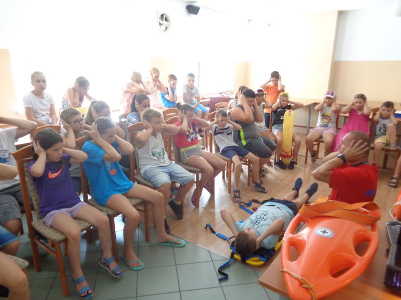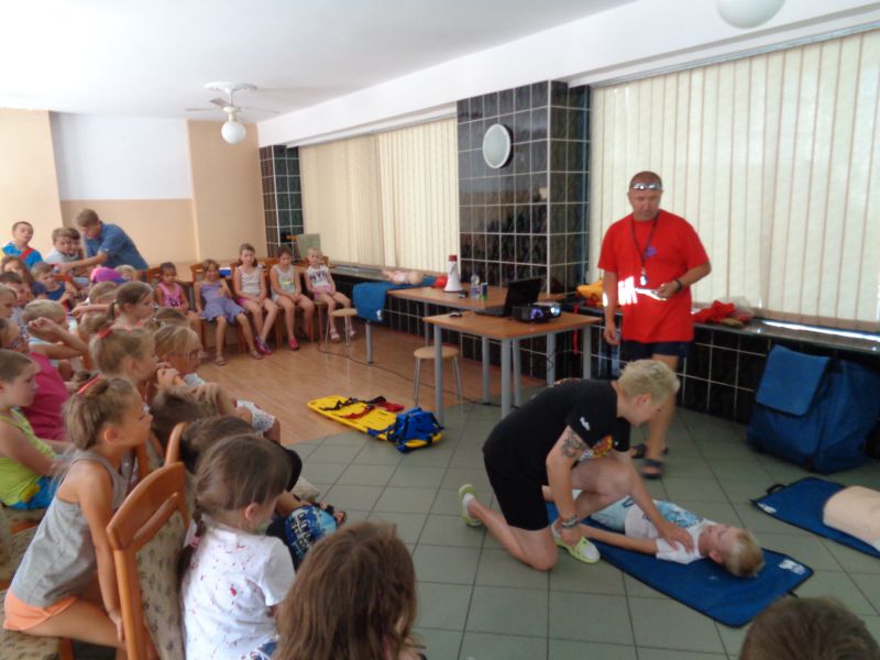 Adresatami pokazów byli półkoloniści korzystających z półkolonii "na sportowo" organizowanych przez Gnieźnieński Ośrodek Sportu i Rekreacji. Brali oni bardzo aktywny udział w zajęciach. Mieli okazję dowiedzieć się, w jaki sposób należy używać sprzętu ratowników wodnych, a na fantomach ćwiczyli resuscytację krążeniowo - oddechową. Dzieci uczyły się również, jak udzielić pomocy dzwoniąc pod numer alarmowy 112.