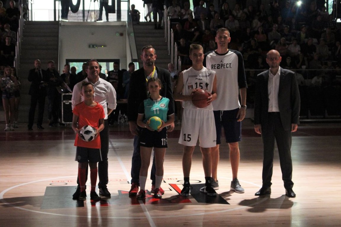 Po krótkim wystąpieniu prezydenta Budasza, nastąpiło symboliczne przekazanie piłek gnieźnieńskim adeptom trzech najpopularniejszych w mieście dyscyplin halowych: piłki ręcznej, koszykówki i futsalu. Przekazania piłek dokonali trzej ambasadorzy tych dyscyplin, zaproszeni na otwarcie przez Prezydenta Miasta: Cezary Trybański – pierwszy polski koszykarz w NBA, Grzegorz Tkaczyk – wieloletni kapitan Reprezentacji Polski i wicemistrz świata w piłce ręcznej oraz Krzysztof Kuchciak – były kapitan i rekordzista pod kątem liczby występów w Reprezentacji Polski w halowej piłce nożnej.