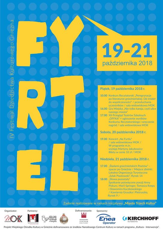 Gwara gnieźnieńska oraz twórczość poetów i pisarzy związanych z pierwszą stolicą Polski to tematy przewodnie IV edycji FYRTLA – festiwalu w całości skupionego na promocji dziedzictwa kulturowego naszego miasta.