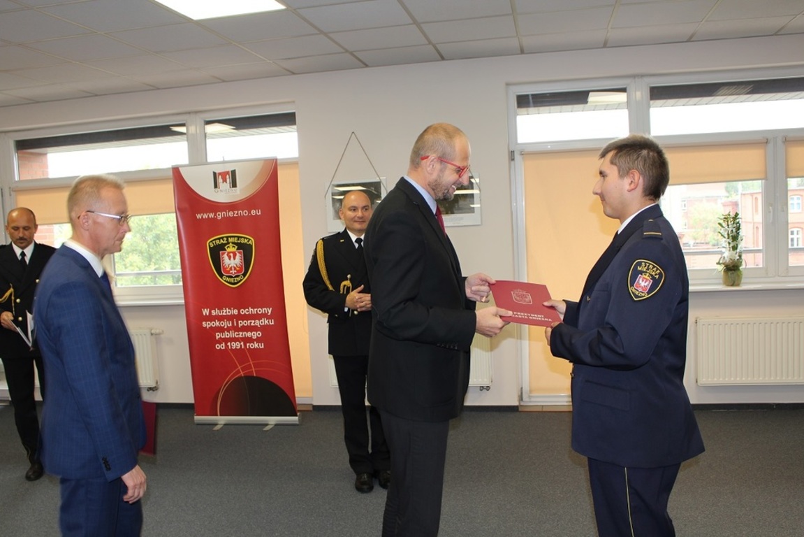 Na wniosek komendanta Straży Miejskiej w Gnieźnie Tomasza Francuszkiewicza, prezydent Tomasz Budasz awansował funkcjonariusza, aplikanta Macieja Zilenowa, na stanowisko młodszego strażnika. Prezydent Gniezna wyróżnił także pochwałami na piśmie i nagrodą finansową młodszego inspektora Marcina Kraczka oraz młodszego strażnika Macieja Zielenowa za ponadprzeciętne realizowanie obowiązków służbowych i obywatelską postawę w związku z zabezpieczeniem imprezy organizowanej przez Muzeum Początków Państwa Polskiego.
