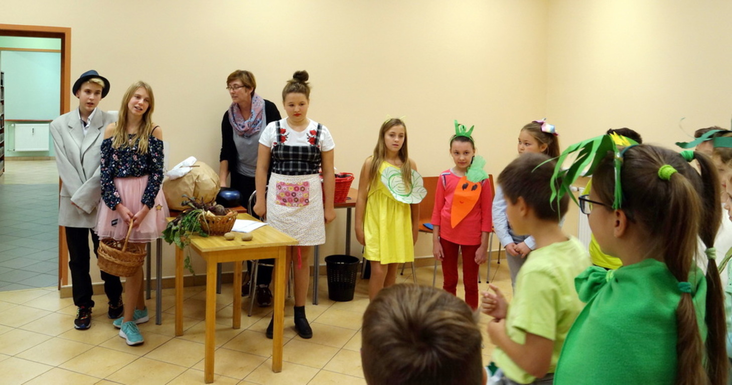 Przybyłe na spotkanie dzieci z Przedszkola nr 17 „Piastowska Gromada” dowiedziały się, że na język gwary zostały przetłumaczone utwory z dziecięcej literatury, jak chociażby „Mały książę”, czyli „Książę Szaranek”. Obejrzały inscenizację „W Wielkopolsce – Na straganie” opartej na przetłumaczonym wierszu Jana Brzechwy, w wykonaniu uczniów ze Szkoły Podstawowej nr 3. Wysłuchały wielkopolskiej wersji wiersza „Lokomotywa” Juliana Tuwima głośno czytanej przez Piotra Wiśniewskiego, pełnomocnika prezydenta Gniezna ds. kultury.