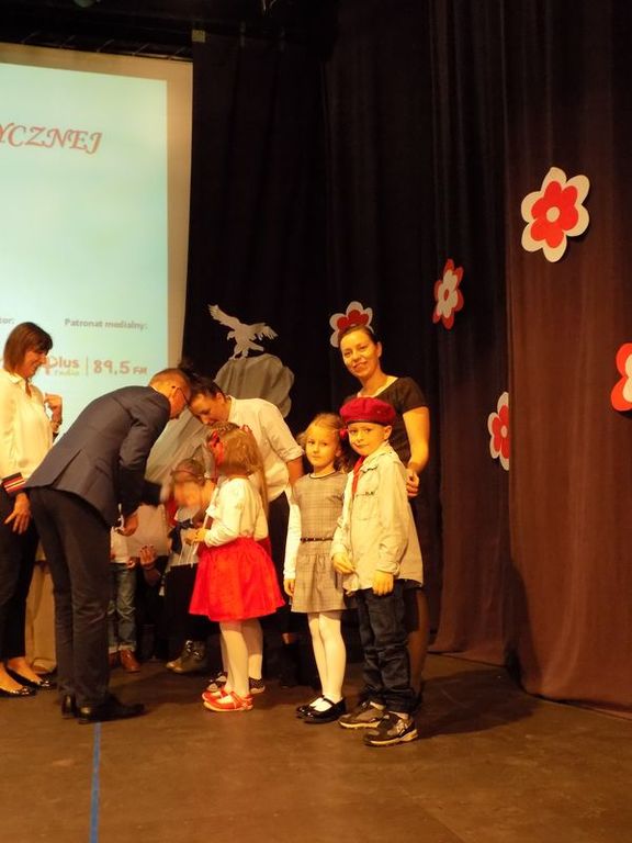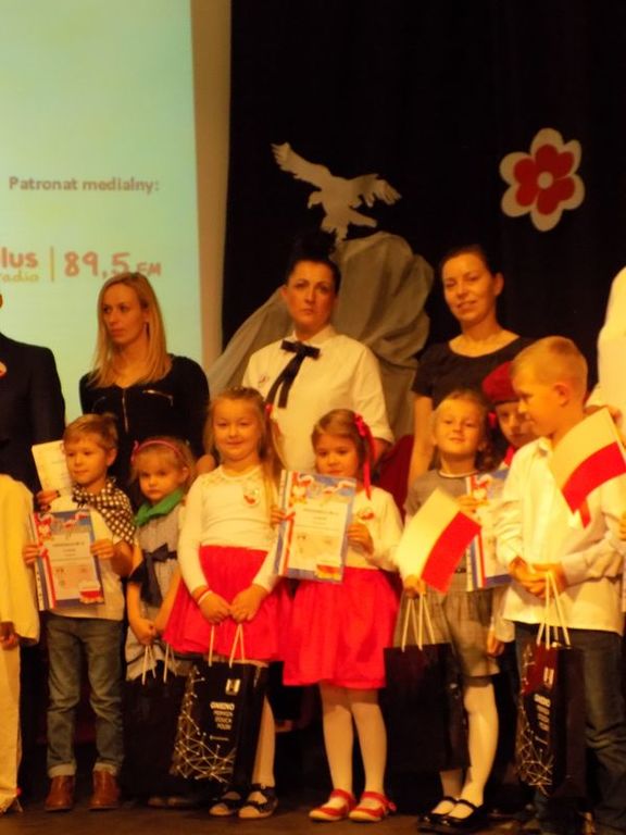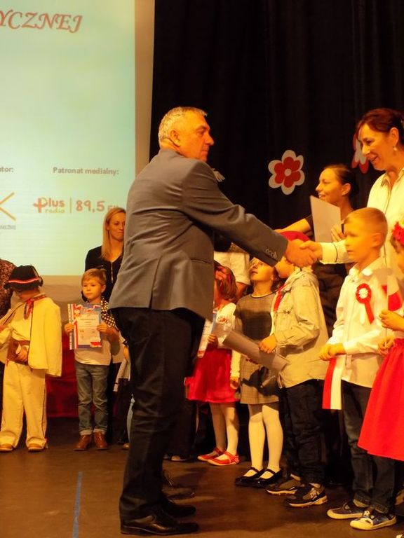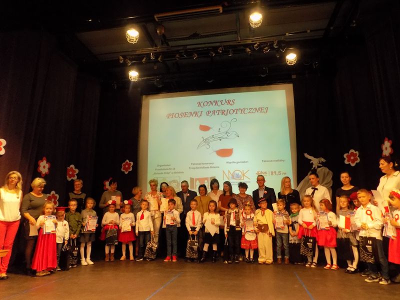 Następnie głos zabrała Dyrektor Przedszkola Nr 13 Pani Małgorzata Niesuchorska, która jako przewodnicząca jury przypomniała wszystkim zgromadzonym „Katechizm polskiego dziecka” Władysława Bełzy. Zasiadające w jury Magdalena Lubońska, doradca metodyczny oraz Janka Matyska, instruktor w MOK również podziękowały dzieciom oraz nauczycielom za piękny występ. Po podsumowaniu konkursu nadszedł czas na wręczenie nagród przez Zastępcę Prezydenta, Dyrektora Wydziału Oświaty Mariana Pokładeckiego oraz członkinie zasiadające w jury. Upamiętnieniem tego wydarzenia była wspólna fotografia.