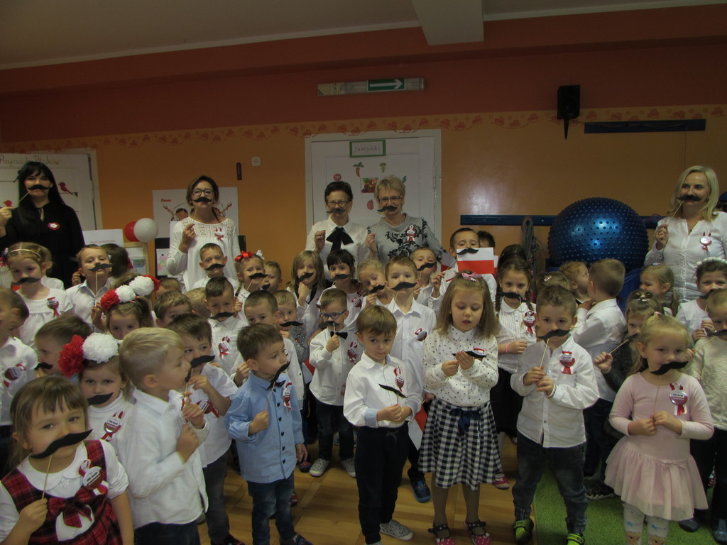 Małych Przyrodników nie mogło także zabraknąć przy biciu „Rekordu dla Niepodległej” Razem z nauczycielami i rodzicami punktualnie o 11:11 odśpiewali Mazurka Dąbrowskiego. Ostatnim elementem uroczystości było „przywdzianie” wąsów marszałka Piłsudskiego.