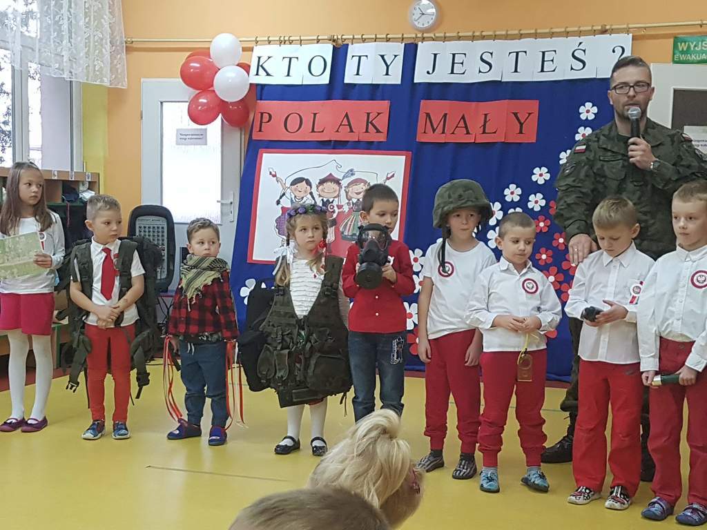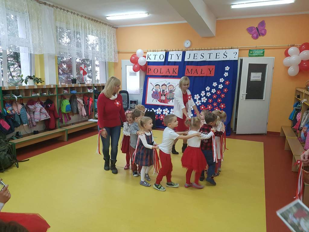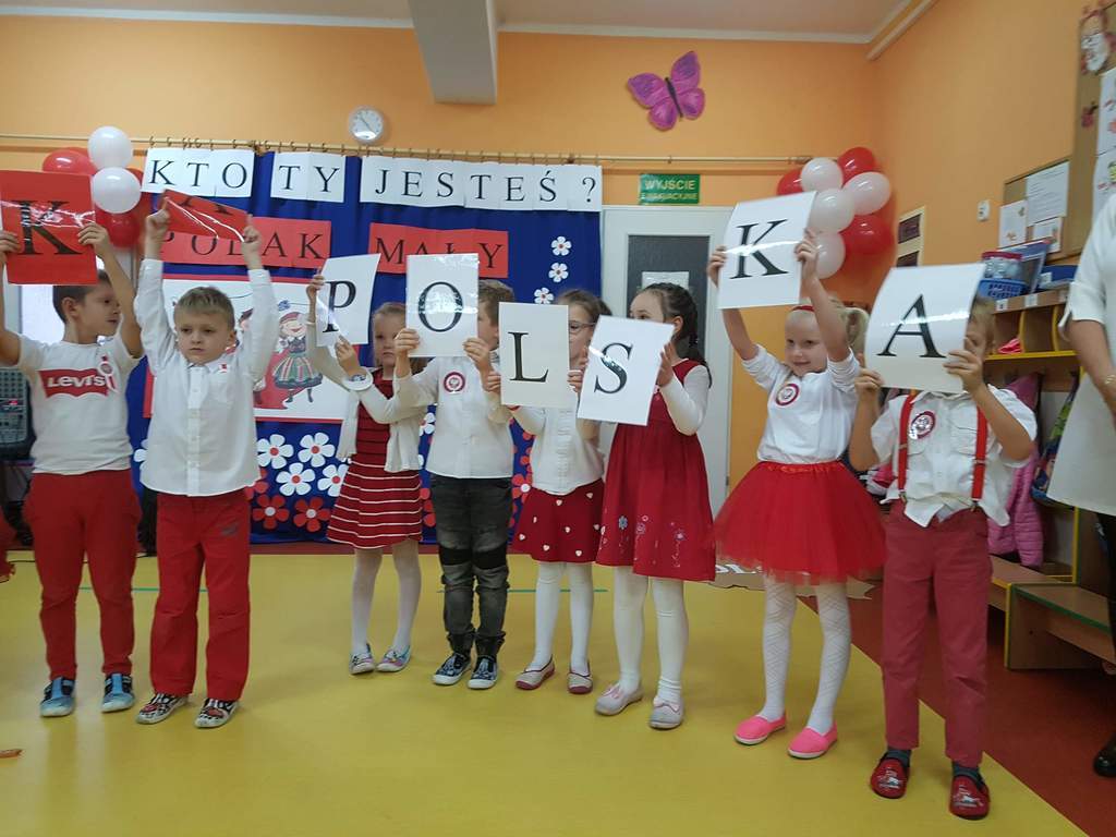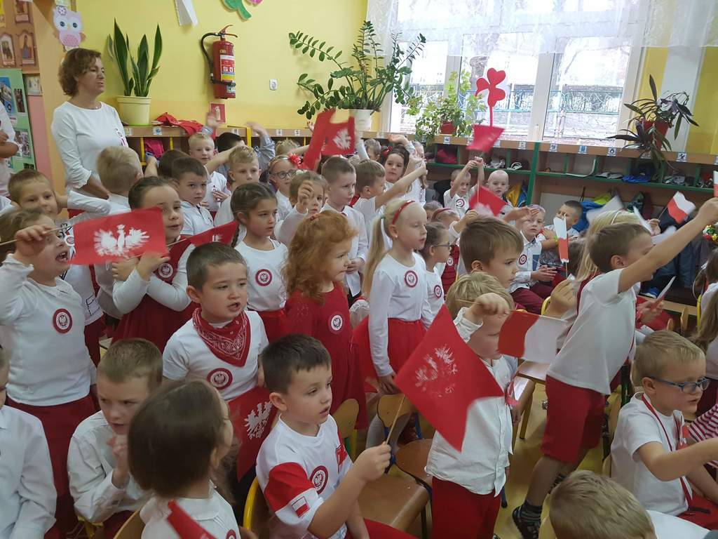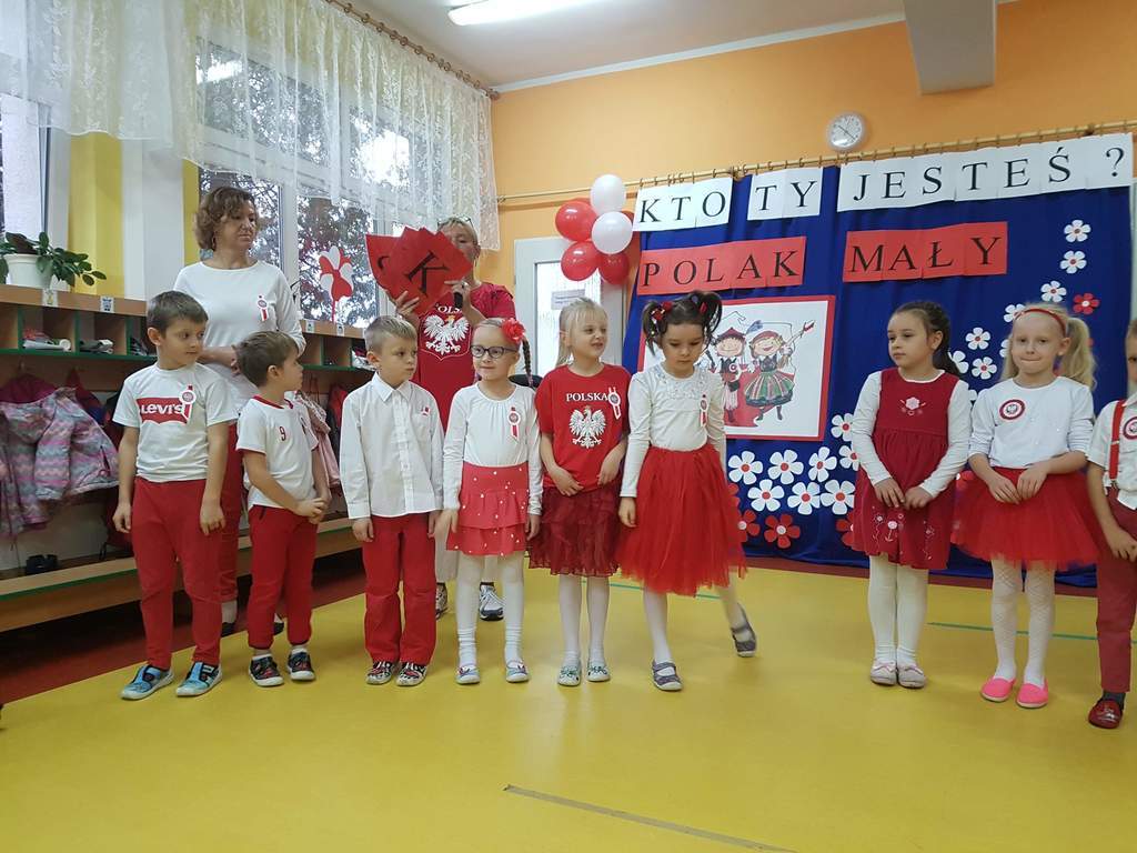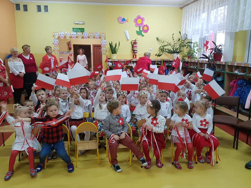 Przedszkolaki przygotowały dla gości szereg niespodzianek. Był program artystyczny, śpiewanie piosenek patriotycznych oraz recytowanie wierszy, udział w akcji „Rekord dla Niepodległej" polegający na wspólnym odśpiewaniu czterech zwrotek hymnu państwowego. Dzieci nie zapomniały o odpowiednim stroju w kolorze barw narodowych oraz rekwizytach przygotowanych specjalnie na tę okazję. Ten dzień na długo pozostanie w pamięci wszystkich przedszkolaków.