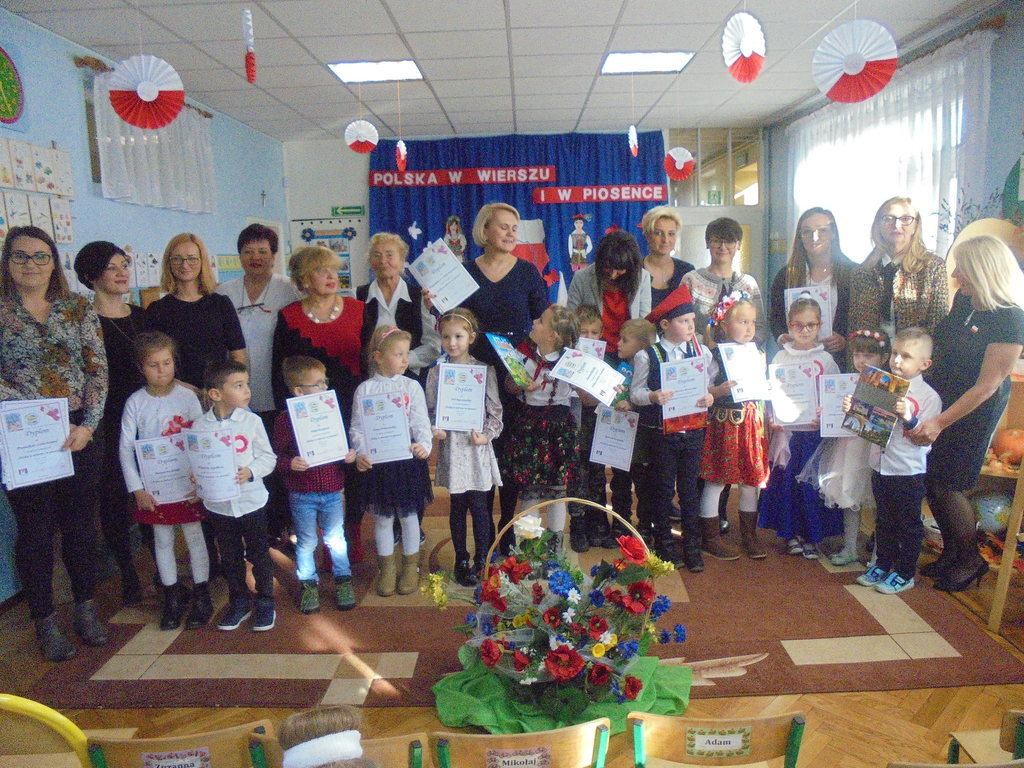 Drugi etap prezentacji: konkurs recytatorsko-wokalny „Polska w wierszu i w piosence” odbył się 20.11.2018 roku, kiedy to zebrali się jego uczestnicy wraz z opiekunami oraz zaproszeni goście: Zastępca Prezydenta Miasta Gniezna Michał Powałowski, Prezes Klubu Nauczycieli Polskich i Polonijnych w Gnieźnie Małgorzata Tomczak, emerytowane panie Dyrektor Przedszkola nr 6: Leokadia Mikuła i Mariola Ilnicka, którzy podjęli się roli jurorów konkursu. W imprezie uczestniczyła również przedstawicielka Rada Rodziców przedszkola Jolanta Florek.