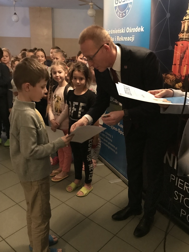 W ramach programu zajęć sportowych uczniowie szkół podstawowych Miasta Gniezna wzięli udział w 20 lekcjach nauki pływania. Zajęcia prowadzone były przez osoby posiadające kwalifikacje instruktorskie lub trenerskie z pływania oraz predyspozycje do pracy z małymi dziećmi. Cykl zajęć zakończył się mini egzaminem i wręczeniem przez prezydenta Gniezna Tomasza Budasza, a także jego zastępcę Michała Powałowskiego okolicznościowych certyfikatów. Koszty uczestnictwa (wynajem basenu, opłacenie instruktorów) ponosi Miasto Gniezno, które realizuje projekt we współpracy z Gnieźnieńskim Ośrodkiem Sportu i Rekreacji.