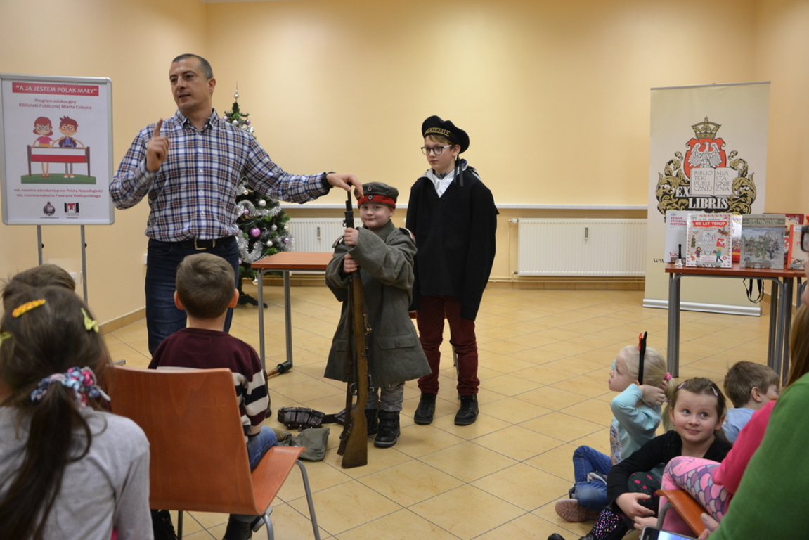 Niestandardowa lekcja historii została zrealizowana dla uczczenia obchodów 100. rocznicy wybuchu Powstania Wielkopolskiego i odbyła się w ramach programu edukacyjnego „A Ja Jestem Polak Mały” realizowanego przez Bibliotekę Publiczną Miasta Gniezna i Urząd Miejski w Gnieźnie.