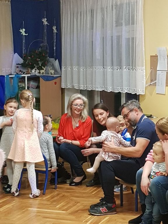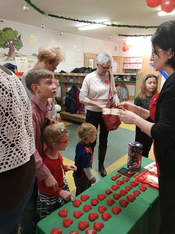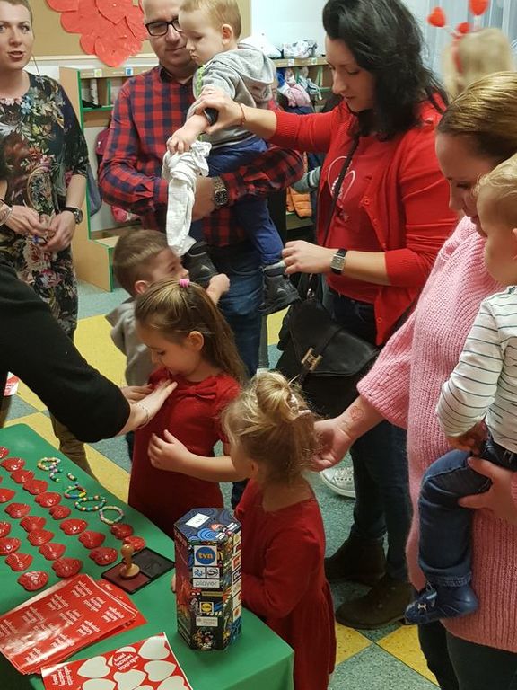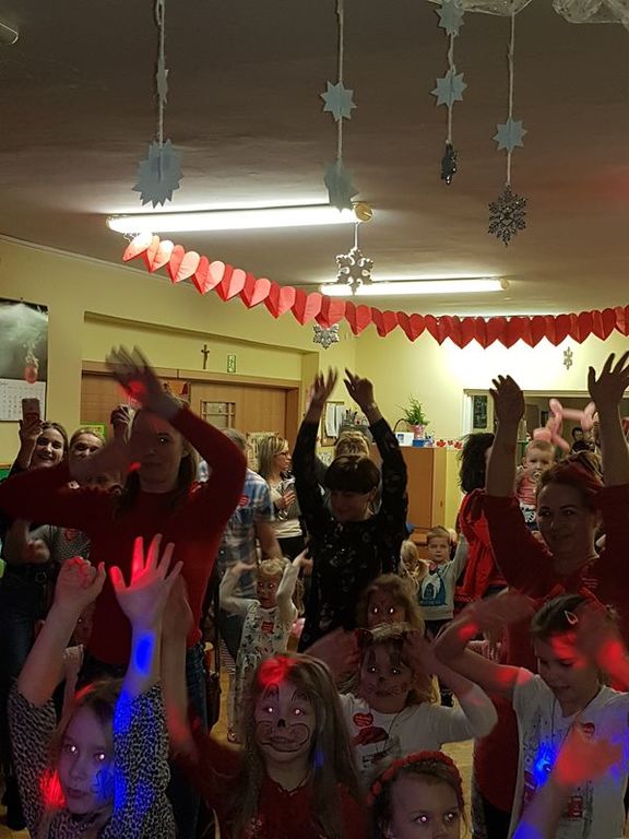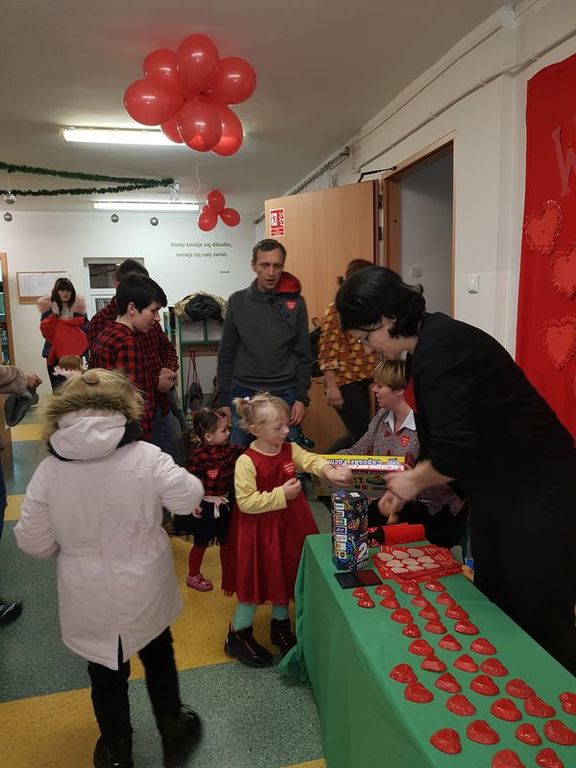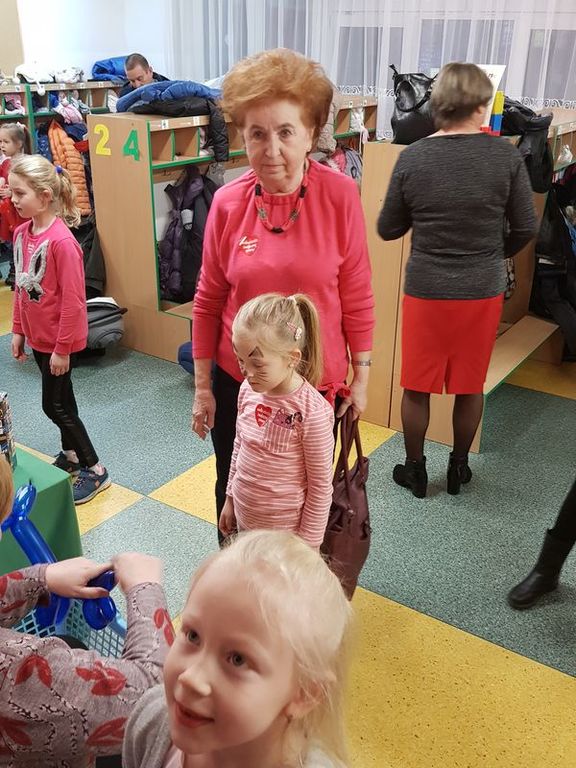Wszyscy świetnie spędzili ten czas przy muzyce pana Olka. Były wesołe i zabawne konkurencje dla dzieci i rodziców. Ten szczególny czas umilił także wszystkim występ zespołu wokalnego Presto. To przemiłe nauczycielki ze Szkoły Podstawowej Nr 12, które swoim śpiewem rozbawiły całe towarzystwo. Nie zabrakło także licytacji, którą perfekcyjnie przeprowadziła prowadząca. Dla wszystkich, którzy mieli ochotę na coś słodkiego, czekało pyszne ciasto upieczone przez niezawodnych rodziców. Panie nauczycielki malowały dzieciom twarze, a serdeczni rodzice zaplatali kolorowe warkoczyki. Serduszka dzieci okazały się bardzo wielkie i szczere, gdyż dzięki uczestnikom zabawy zebrano rekordową sumę 2403,47zł.