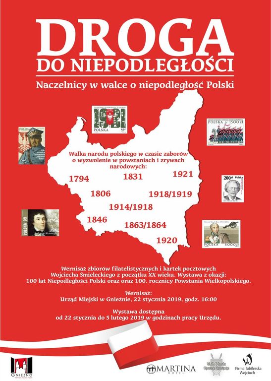 Zapraszamy na wernisaż zbiorów filatelistycznych i kartek pocztowych z początku XX wieku pod nazwą „Droga do niepodległości. Naczelnicy w walce o niepodległość Polski" przygotowany przez Wojciecha Śmieleckiego.