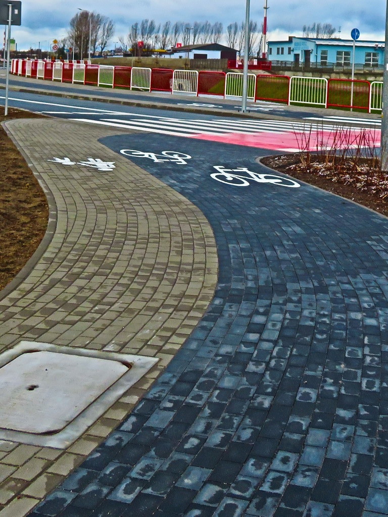 - ścieżka rowerowa dwukierunkowa o nawierzchni z kostki betonowej bezfazowej, szerokości 2 m i powierzchni około 1760 m2,