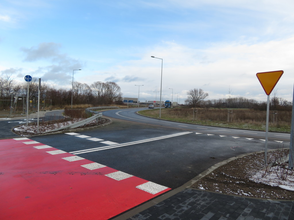 Wybudowany odcinek nowej drogi zlokalizowany jest na nieużytkach położonych między ulicami Słoneczną i Osiniec oraz bazą PKS i zakładami Panasonic Energy Poland. Ma wydzielony ruch samochodowy, rowerowy i pieszy. W ramach przebudowy ulicy Osiniec wykonana została nowa sieć kanalizacji deszczowej. Z wybudowanej ulicy zostały wykonane zjazdy publiczne i indywidualne do posesji oraz na teren pasa technologicznego i do zbiornika retencyjnego o nawierzchni z kostki betonowej.