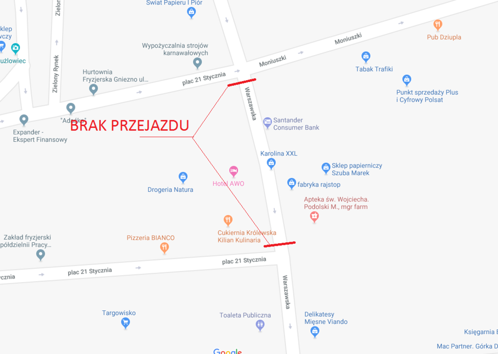 Przedsiębiorstwo Wodociągów i Kanalizacji w Gnieźnie Spółka z o.o. informuje, iż w związku z awarią sieci wodociągowej w ul. Warszawskiej 7 lutego 2019 roku (czwartek) wystąpią utrudnienia w ruchu drogowym.