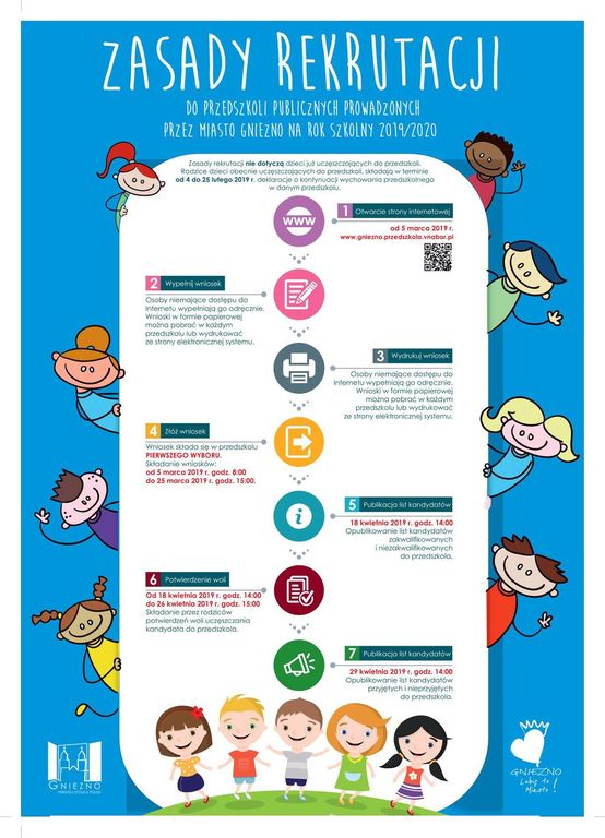 Więcej informacji na załączonych grafikach. W razie pytań związanych z procesem naboru, prosimy o kontakt z właściwą placówką lub Wydziałem Edukacji Urzędu Miejskiego w Gnieźnie.