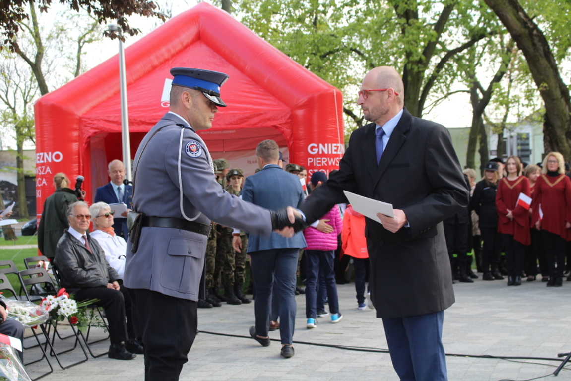 O godzinie 17:00 rozpoczęła się część oficjalna obchodów, podczas której przemówił Przewodniczący Rady Miasta Gniezna Michał Glejzer, zostały złożone kwiaty pod Pomnikiem w Parku im. T. Kościuszki oraz zostały wręczone wyróżnienia: