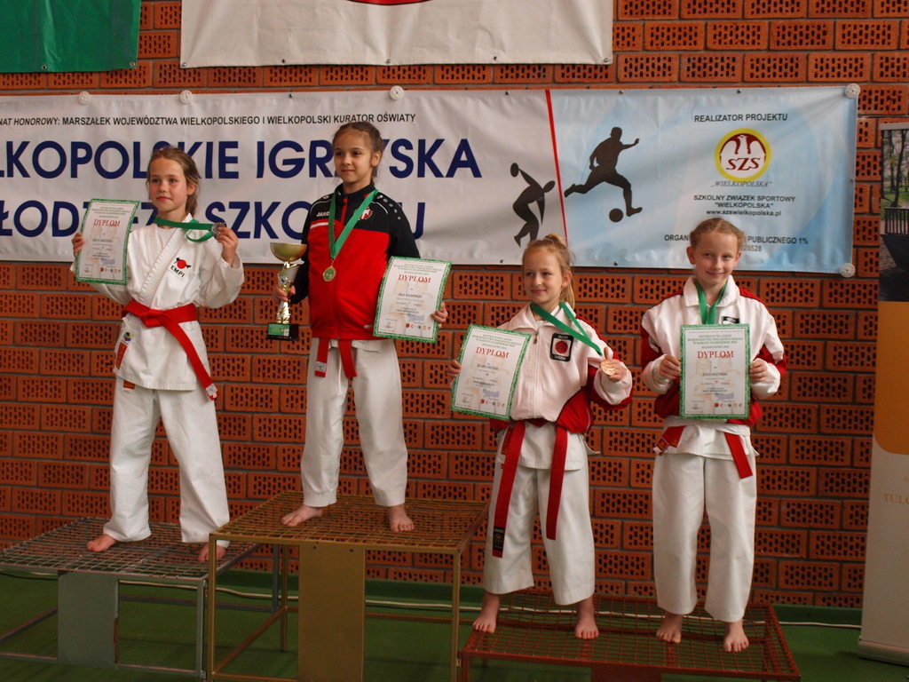 - Jolanta Woźniak (SP nr 9 w Gnieźnie) - 3 miejsce kata dziewcząt 2009-2008 pomarańczowe pasy+, 3 miejsce kumite dziewcząt 2009-2008 -33kg,