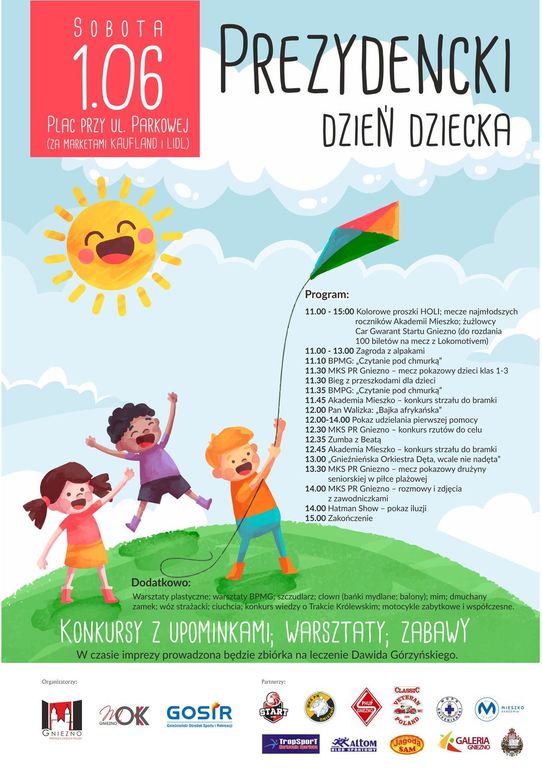 W sobotę, 1 czerwca warto zajrzeć na plac przy ulicy Parkowej w Gnieźnie. Od 11.00 rozpocznie się tam Prezydencki Dzień Dziecka. W programie przewidziano między innymi mecze piłki nożnej i ręcznej, spotkanie z żużlowcami, zagrodę z alpakami, biegi z przeszkodami i konkursy z nagrodami.