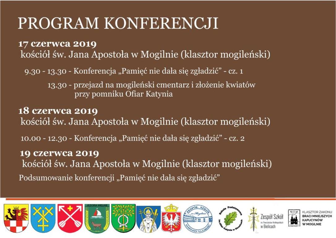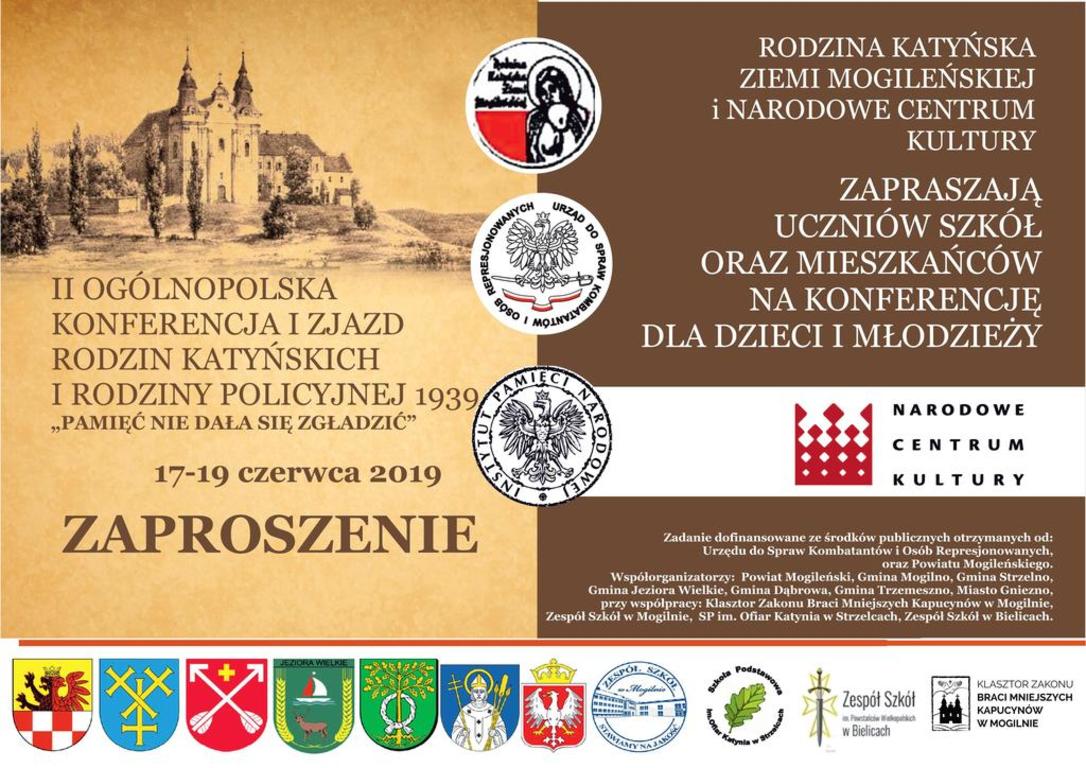 Rodzina Katyńska Ziemi Mogileńskiej oraz Narodowe Centrum Kultury Zapraszają uczniów szkół oraz mieszkańców na konferencję „Pamięć nie dała się zgładzić”. Szczegółowy program oraz wszelkie informacje dostępne na plakatach.