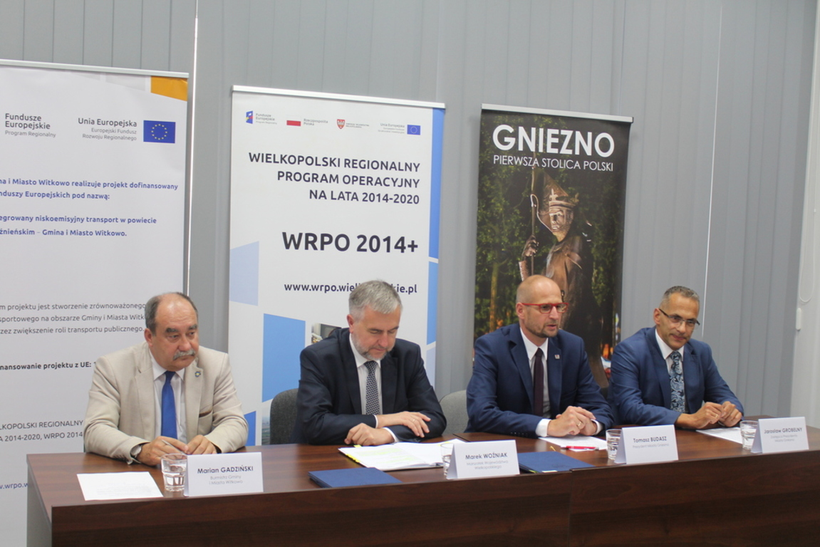 Tego samego dnia, w gnieźnieńskim magistracie Marszałek podpisał umowę z Marianem Gadzińskim – Burmistrzem Gminy i Miasta Witkowo. Gmina ta otrzymała bowiem dofinansowanie 1.274.975,97 złotych na projekt z tego samego obszaru zadań. Przedsięwzięcie pod nazwą „Zintegrowany niskoemisyjny transport w powiecie gnieźnieńskim – Gmina i Miasto Witkowo – II etap” obejmie przebudowę dróg i chodników, montaż lamp hybrydowo-solarnych, bezobsługowej stacji naprawy rowerów oraz małej architektury.