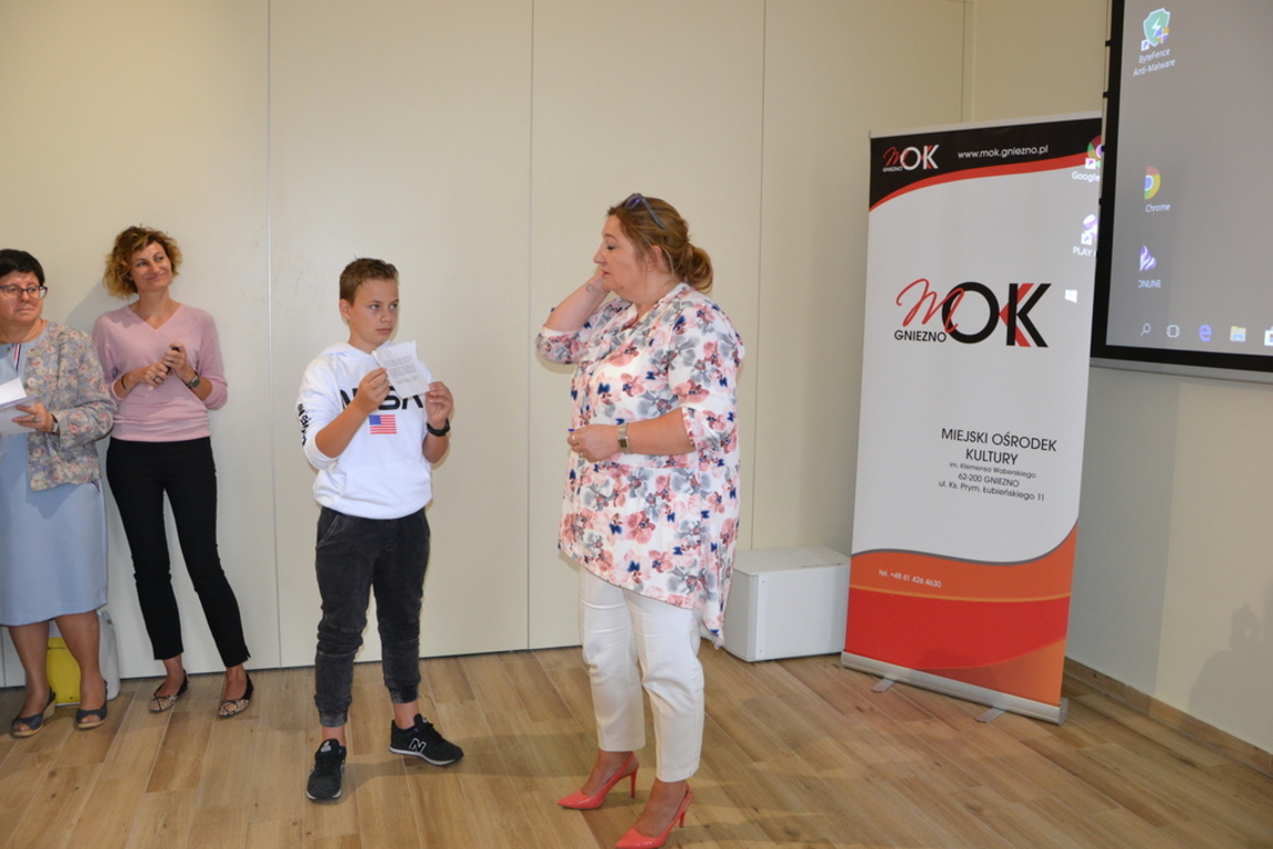 Na koniec można było przybić okolicznościową pieczątkę Narodowego Czytania na widokówce z XIX wiecznym Gnieznem przygotowanej przez Informację Turystyczną Szlak Piastowski.