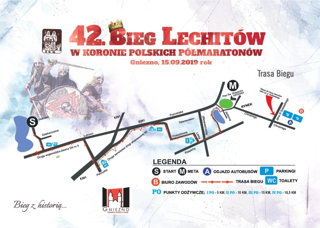 15 września 2019 roku odbędzie się 42. Bieg Lechitów. W związku z tym organizatorzy uprzejmie proszą o nieporuszanie się w godzinach od 11.00 do 14.00 samochodami i innymi pojazdami po trasie wskazanej na mapce. Zachęcamy jednocześnie do wspólnego kibicowania biegaczom!