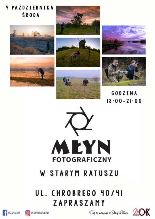 Fotograficzny Młyn w Starym Ratuszu jest efektem zawiązanej współpracy z gnieźnieńską organizacją, zrzeszającą lokalnych fotografików. Tego dnia we wszystkich pomieszczeniach Starego Ratusza różnorodny sposób opowiedzą o swojej pasji, zachęcą do interakcji, pokażą swoje fotografie.