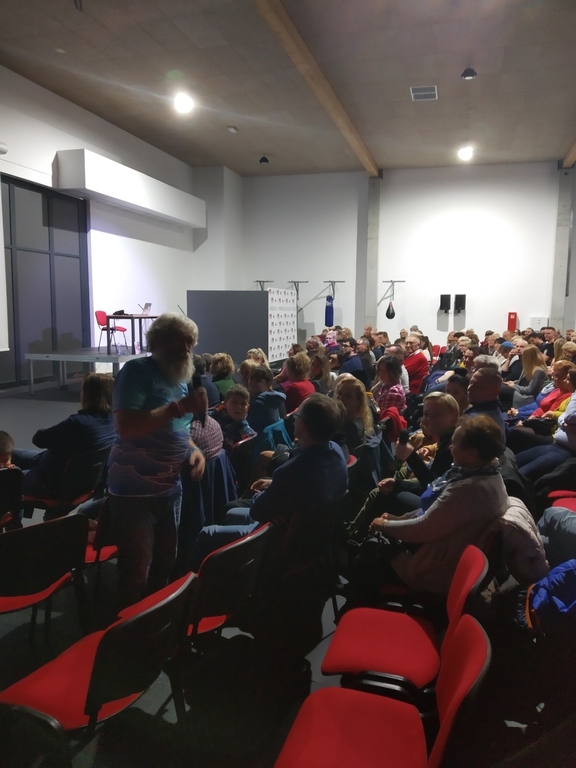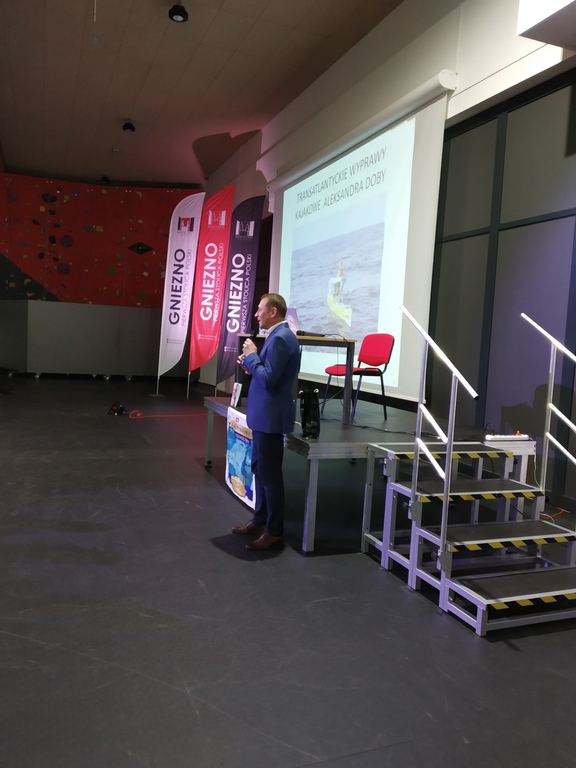 W Hali im. Mieczysława Łopatki, gość dzielił się z publicznością wrażeniami, jakie towarzyszyły mu podczas trzech transatlantyckich wypraw kajakiem. Opowiedział o tym, co było najtrudniejsze podczas przebywania pół roku samemu na oceanie, jakie niebezpieczeństwa i zabawne sytuacje go spotkały oraz jak do jego samotnych wypraw podchodzi rodzina.