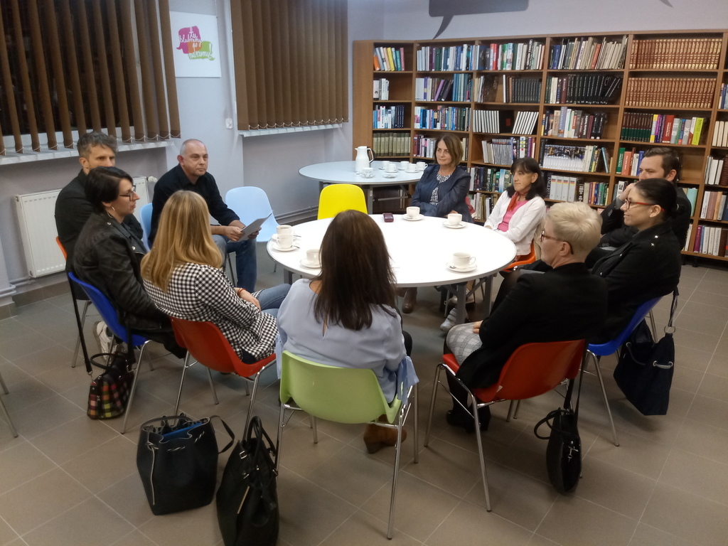 Spotkano się w czwartek, 24 października, jak zwykle w Czytelni Biblioteki Głównej. Temat spotkania został ujęty w hasło „Niepełnosprawność a dostępność w kulturze”. Wśród gości znalazły się zarówno osoby pracujące na co dzień z dotkniętymi niepełnosprawnością w stowarzyszeniach, nauczyciele Ośrodków Szkolno-Wychowawczych, a także przedstawiciele instytucji kulturalnych z miasta i okolic, mające stały kontakt z osobami niepełnosprawnymi.