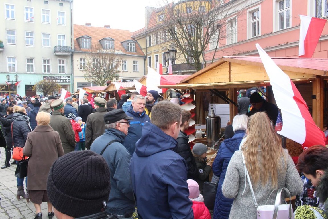 Czy byłby jednak 11 listopada bez tradycyjnych rogali Marcińskich? Jak można było zauważyć cieszyły się one bardzo dużym zainteresowanie podczas niewielkiego jarmarku, który ponownie miał miejsce na płycie Rynku. Wielu przybyłych na obchody przywdziało również muchy, które można było podziwiać w różnych formach nie tylko klasycznych włączając się tym samym do akcji #przywdziejmuche