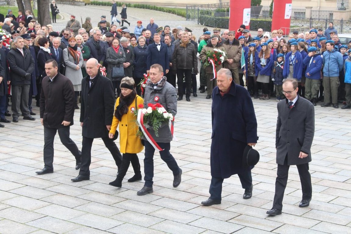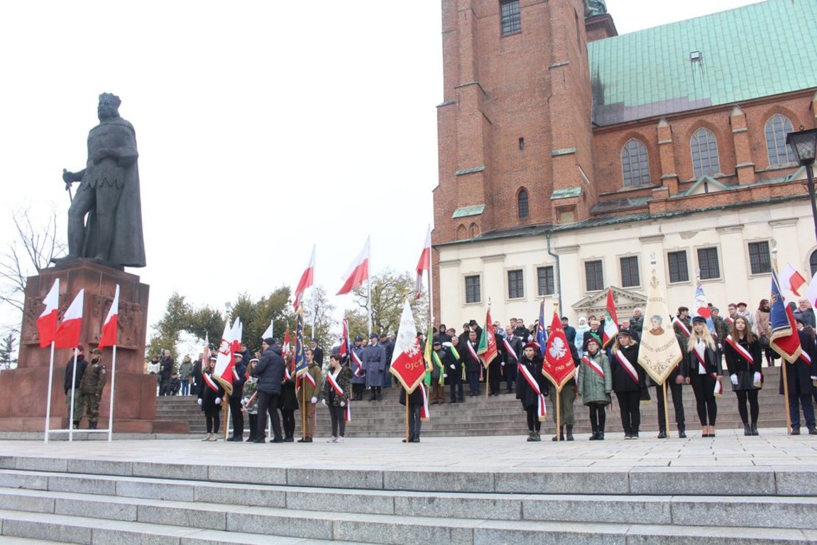 Było to niejako preludium wczorajszych wydarzeń, które rozpoczęły się Mszą św. w Bazylice Prymasowskiej. Tuż po niej wszyscy zgromadzeni byli świadkami rozpoczynającego się V Biegu Niepodległości, po którym podobnie jak w poprzednich latach zwrócił się do nas z przesłaniem rekonstruktor wcielający się w postać marszałka Józefa Piłsudskiego. Zwieńczeniem oficjalnych obchodów, były kwiaty złożone przez delegacje przybyłe na plac Prymasa Mikołaja Trąby.