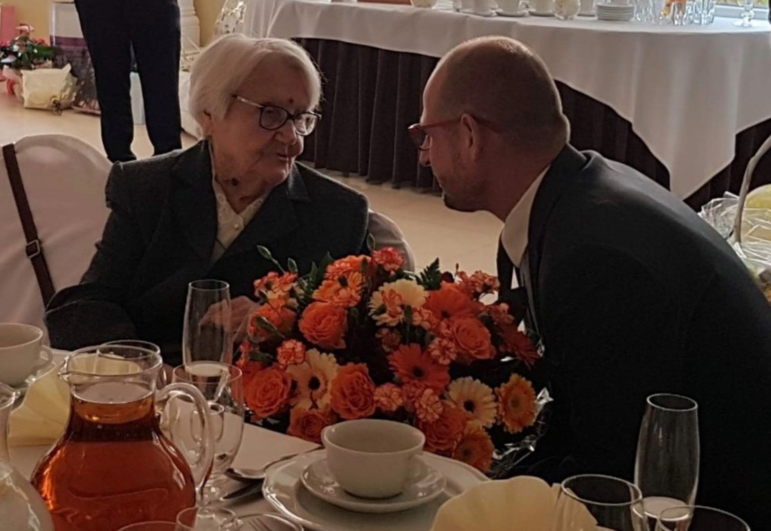 Teodora Marianna Kozłowska urodziła się dokładnie sto lat temu- 12 listopada 1919 roku w Ochodzy, jako drugie z kolei dziecko Józefa i Heleny Stachowiak. Edukację szkolną zaczęła w szkole powszechnej przy Klasztorze oo. Franiszkanów w Gnieźnie. Od jedenastego roku życia uczęszczała do Żeńskiego Gimnazjum im. Bł. Jolenty w Gnieźni (obecnie II Liceum Ogólnokształcące), aż do jego ukończenia. Podczas II wojny światowej z przydziału arbeitsamtu (biura pracy) pod konie 1941 roku razem z siostrą Zofią pracowała w cukrowni jako pracownice sezonowe. Po trzech tygodniach została wybrana do wyjazdu na przymusowe roboty do Niemiec. Wywieziono ją do miejscowości Hildesheim w górach Harzu, gdzie została zatrudniona od stycznia 1942 roku w fabryce części samolotowych jako nawijaczka. Tam pracowała do 8 kwietnia 1945 roku, praktycznie do chwili wyzwolenia przez wojska angielskie i amerykańskie. Był to obóz pracy. Do kraju udało jej się powrócić dopiero w marcu 1946 roku, a do Gniezna przyjechała 2 kwietnia 1946 roku. 29 stycznia 1947 roku wyszła za mąż za Klemensa Hartwicha, z którym miała trzech synów. W 1958 roku podjęła pracę zawodową w Miejskim Przedsiębiorstwie Przemysły Terenowego, a w wyniku reorganizacji została przeniesiona do Spółdzielni Budowlnej Remo- Bud, w której pracowała do chwili przejścia na emeryturę w kwietniu 1980 roku. Po czterech latach od śmieci męża Klemensa, dokładnie 28 kwietnia 1973 roku ponownie wyszła za mąż za Edmunda Kozłowskiego - nauczyciela w Szkole Specjalnej. Drugi mąż zmarł w maju 2001 roku. Pani Teodora jest matką trzech synów, babcią pięciu wnuków i jednej wnuczki, prababcią dwóch prawnuków i sześciu prawnuczek. Jubilatce w minioną niedzielę życzenia wszelkiej pomyślności miał okazję osobiście złożyć prezydent Miasta Gniezna Tomasz Budasz.