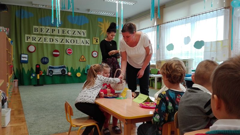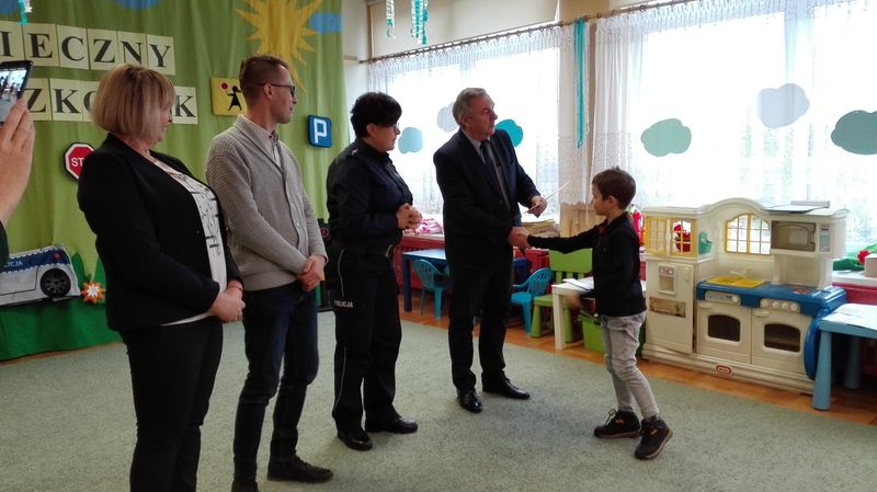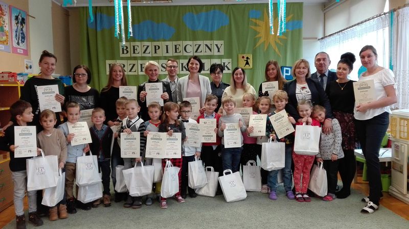 Na dzieci czekały bardzo ciekawe zadania m.in.: „Zgaduj zgadula”, zabawa: „Tak-Nie”, zrobienie „Przejścia dla pieszych”, układanie kolorów na sygnalizatorze, odnajdywanie i zakreślanie numerów alarmowych. Wszystkie przedszkolaki zrobiły ogromne wrażanie na jury i wykazały się ogromną wiedzą i umiejętnościami. Dlatego też wszyscy uczestnicy konkursu zostali nagrodzeni dyplomami i upominkami ufundowani m.in. przez Prezydenta Miasta Gniezna.