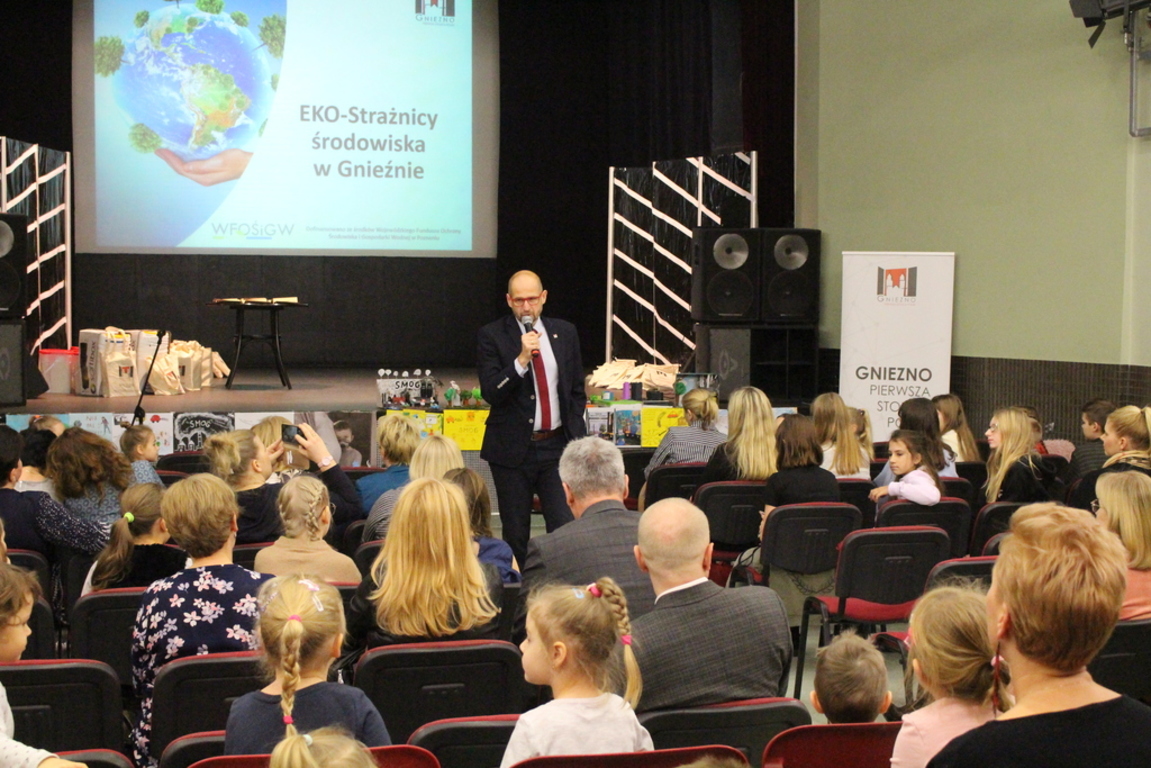 „EKO-Strażnicy środowiska w Gnieźnie” to kampania edukacyjna prowadzona w gnieźnieńskich szkołach i przedszkolach. W jej trakcie odbywały się warsztaty prowadzone przez edukatorów ekologicznych, mające na celu kształtowanie prawidłowych postaw w zakresie ochrony środowiska i wyjaśnianie zagadnień z tym związanych. Tematyka tegorocznej akcji dotyczyła zagadnień związanych z czystym powietrzem, selektywną zbiórką odpadów oraz kwestiami zrównoważonego rozwoju. W kampanii wzięło udział blisko 3000 dzieci z przedszkoli oraz szkół podstawowych z klas II-III i VI-VII. Uczestnicy warsztatów poznawali przyczyny występowania smogu oraz sposoby walki z nim, a także zasady prawidłowej segregacji odpadów komunalnych. Ponadto, omawiano zagrożenia wynikające z niewłaściwego postępowania z odpadami. Chętni mogli wziąć udział w konkursach. Zadaniem dzieci młodszych było stworzenie „mapy myśli” ukazującej przyczyny powstawania smogu oraz pokazanie skutków i zagrożeń, jakie niesie ze sobą zanieczyszczenie powietrza. Natomiast dzieci z klas starszych przygotowali makietę antysmogową ukazującą nie tylko zagrożenia wynikające z nadmiernej emisji spalin, ale też działania, które należy podjąć w celu walki ze smogiem. Dziś podsumowano projekt oraz nagrodzono laureatów konkursów.