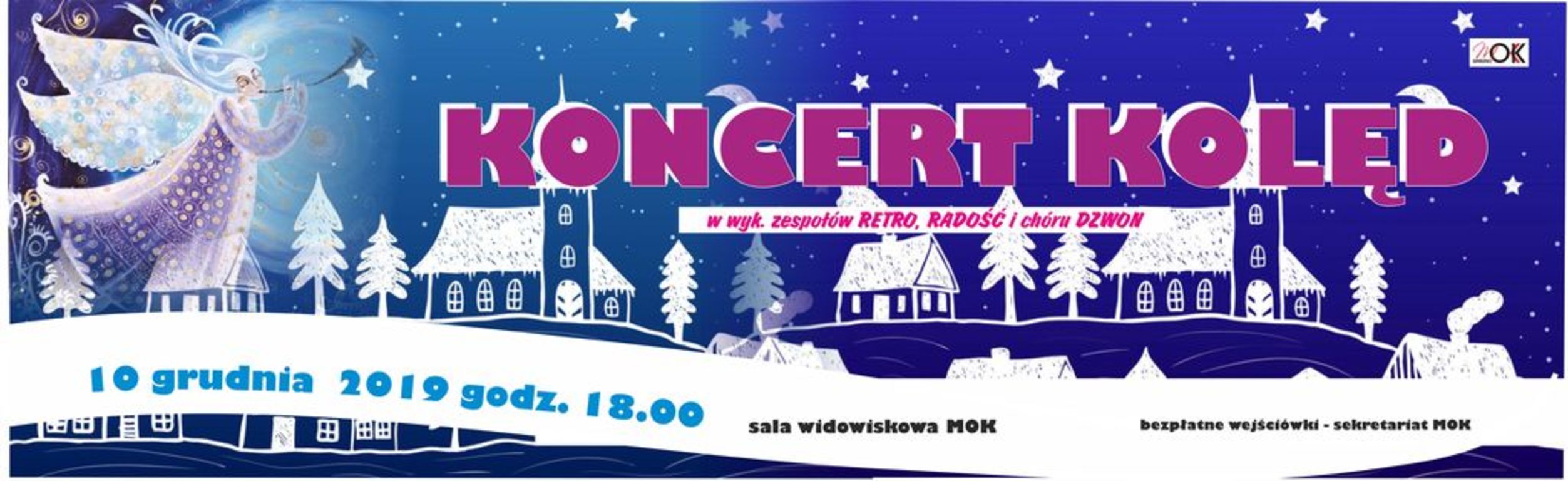 Od kilku lat z inicjatywy zespołu Retro odbywa się koncert, podczas którego zespoły na co dzień działające w MOK, śpiewają nastrojowe, piękne kolędy i pastorałki. W tym roku obok zespołu wokalnego Retro usłyszymy także zespół Radość i chór Dzwon. Atmosfera podczas występów jest tak radosna i wyjątkowa, że publiczność spontanicznie włącza się do śpiewania. Na zakończenie wokaliści wychodzą razem na scenę by wspólnie zaśpiewać ostatnią kolędę.