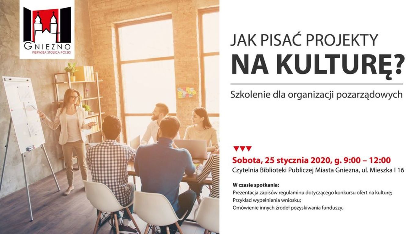 Z kolei 25 stycznia, druga z „sobót obywatelskich” to dzień, w którym odbędzie się bezpłatne szkolenie dla organizacji pozarządowych dotyczące zasad konkursów otwartych ofert w ramach kultury. Podczas szkolenia, które odbywać się będzie między 9:00 a 12:00 w Czytelni Biblioteki Publicznej Miasta Gniezna przy ulicy Mieszka I 16, wyjaśnione zostaną szczegółowo zasady przystępowania do konkursów. Ponadto, omówione będą wszystkie możliwe formy źródeł finansowania.