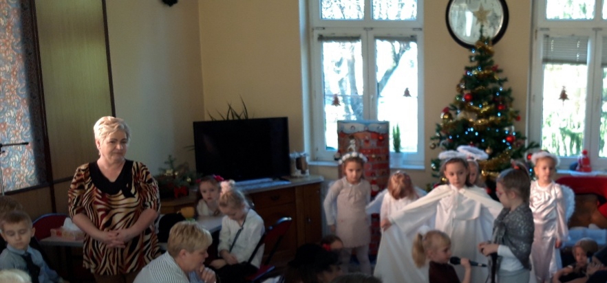 Dzieci nie zapomniały o przypadającym tego dnia święcie Babci i Dziadka. Przedstawiając repertuar słowno-muzyczny z tej okazji, a także obdarowując wszystkie Babcie i Dziadków drobnymi upominkami. Przybycie przedszkolaków sprawiło, że twarze podopiecznych Domu Opieki Społecznej były uśmiechnięte i szczęśliwe, a dzieci otrzymały gromkie brawa i podziękowania.