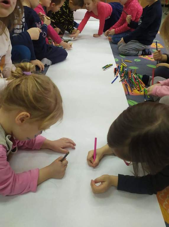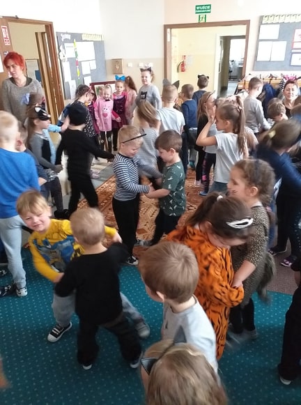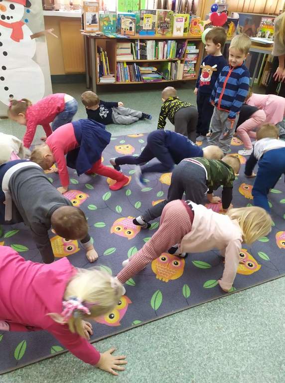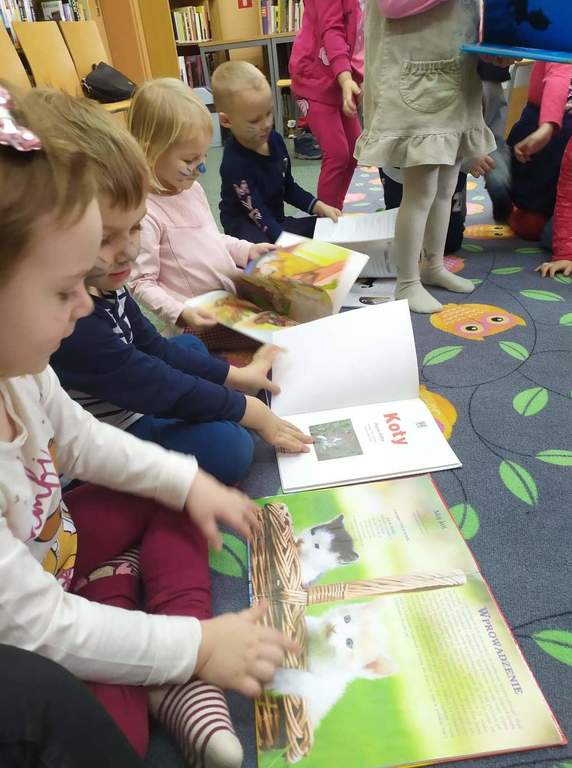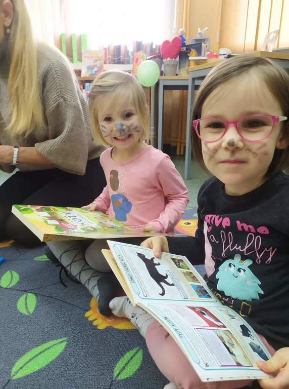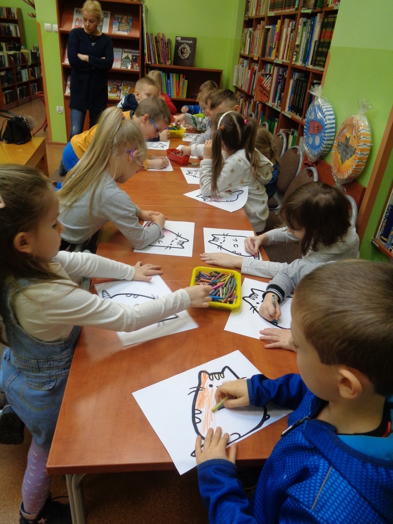 Wesołym akcentem zajęć była zabawa, w której dzieci pokazywały, jak kot robi koci grzbiet, jak pije wodę z miseczki czy wreszcie jak bezszelestnie się porusza. Cały ten "koci świat" zrobiliśmy w ramach akcji Cała Polska czyta dzieciom.
