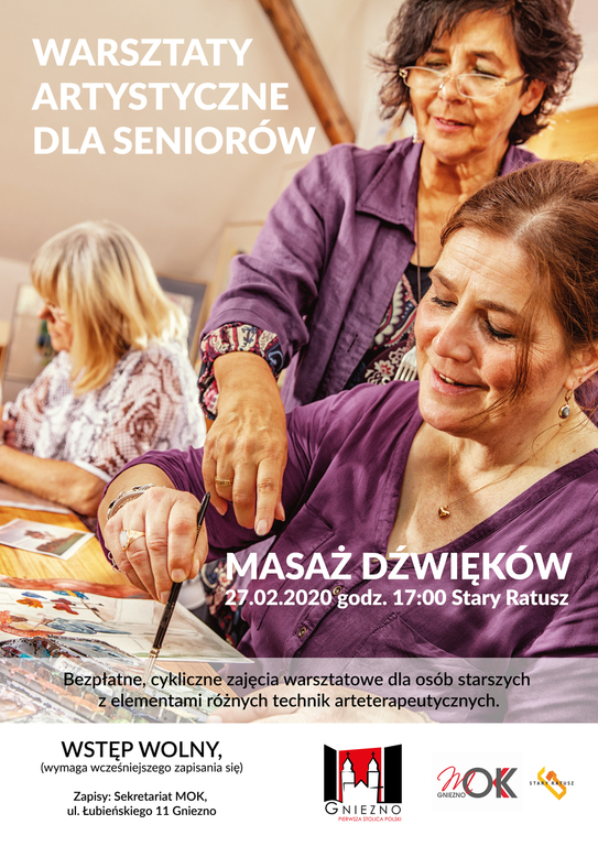 Warsztaty artystyczne odbywać się będą w Miejskim Ośrodku Kultury. Nawiązując do technik arteterapii dla seniorów, zostaną tam wykorzystane różne techniki artystyczne poszerzające kreatywność, wyobraźnię, pracę na własnym potencjale. Będzie to możliwość do rozwinięcia umiejętności manualnych i pobudzenia sensoryki. To również sposób na relaksację w trudnych sytuacjach życiowych i stanach chorobowych.