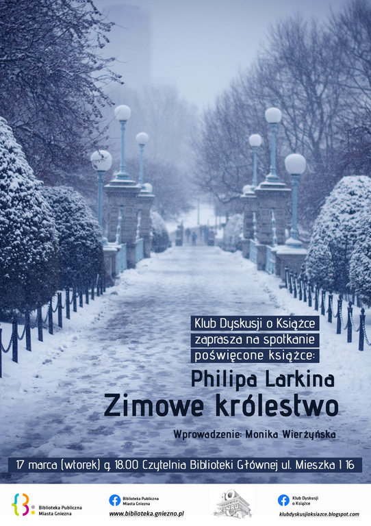 Poetyckie tropy, nie tylko te zimowe, śledzić będą członkowie Klubu Dyskusji o Książce. Barwną postać wciąż mało znanego w Polsce autora przedstawi Monika Wierżyńska. Mamy nadzieję, że ten niezbyt obszerny wstęp spełni swoją rolę i zachęci Państwa do poznania „Zimowego królestwa". Niech jednocześnie będzie zaproszeniem do czytelniczego spotkania - 17 marca we wtorek, o 18.00 w Czytelni Biblioteki Głównej przy ul. Mieszka I 16.