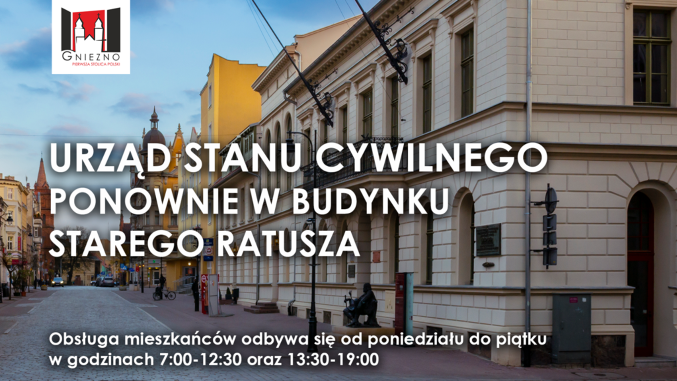 Urząd Stanu Cywilnego ponownie wrócił do swojej dawnej siedziby w budynku Starego Ratusza. Obsługa interesantów odbywa się od poniedziałku do piątku między 7:00 a 12:30 oraz między 13:30 a 19:00.
