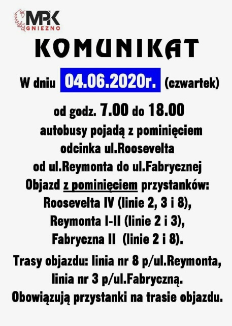 MPK informuje o objazdach dla linii: 2, 3 i 8