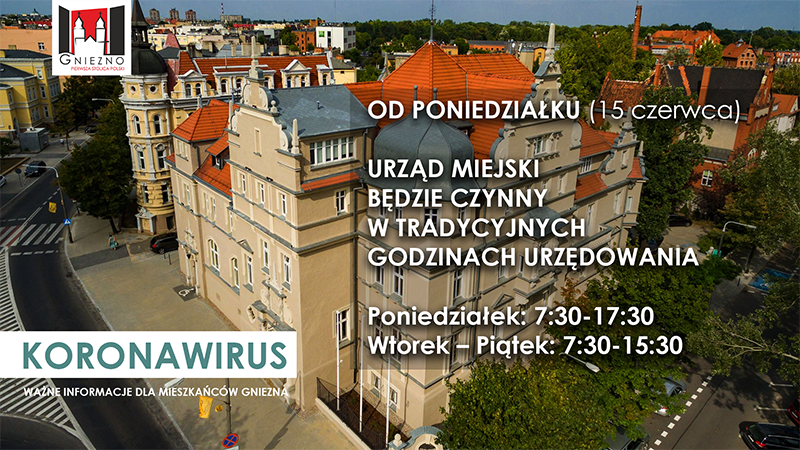 Niezmiennie rekomendujemy mieszkańcom ograniczenie wizyt w Urzędzie do niezbędnego minimum i przypominamy, że szereg spraw załatwić można drogą elektroniczną bądź telefoniczną, pod numerem: 61 426 04 00. Aktualny wykaz telefonów znajduje się na stronie www.gniezno.eu