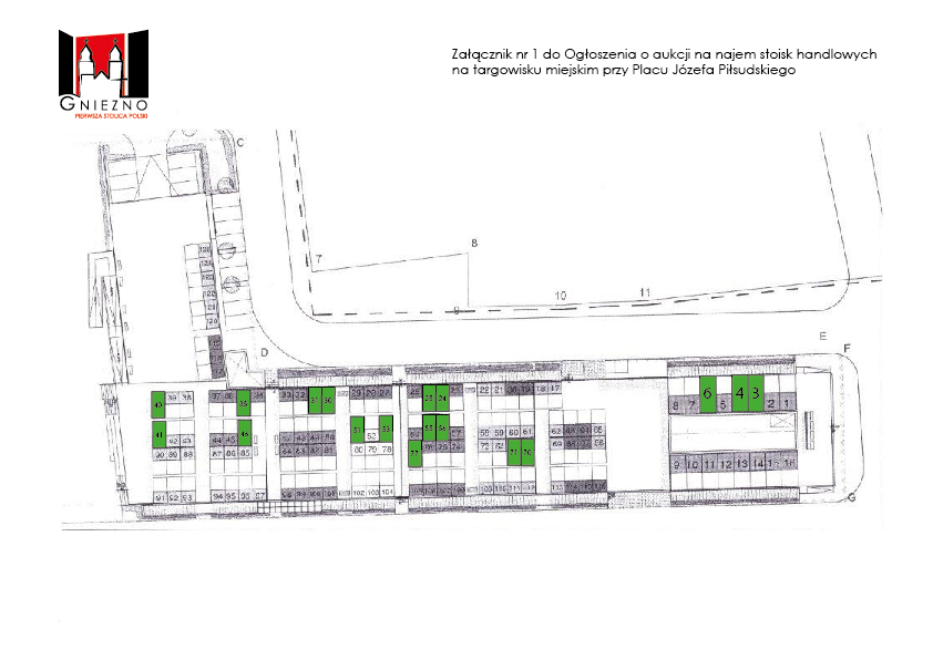 Prezydent Miasta Gniezna ogłasza aukcję na najem stoisk handlowych na targowisku miejskim przy Placu Józefa Piłsudskiego w Gnieźnie. Pełen tekst ogłoszenia oraz załączniki poniżej do pobrania.
